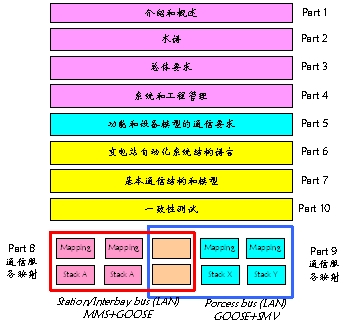 圖1 IEC61850規(guī)約十個部分的名稱和關系圖